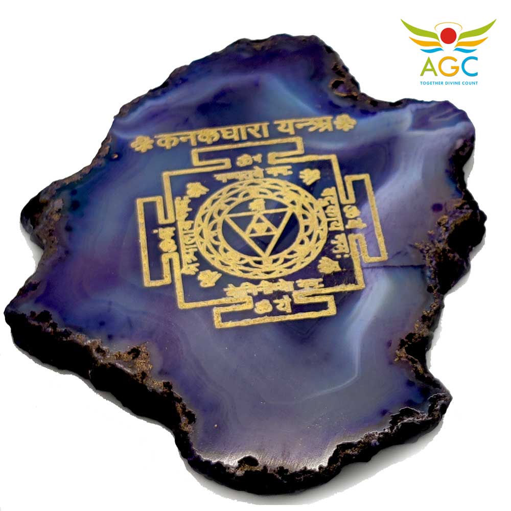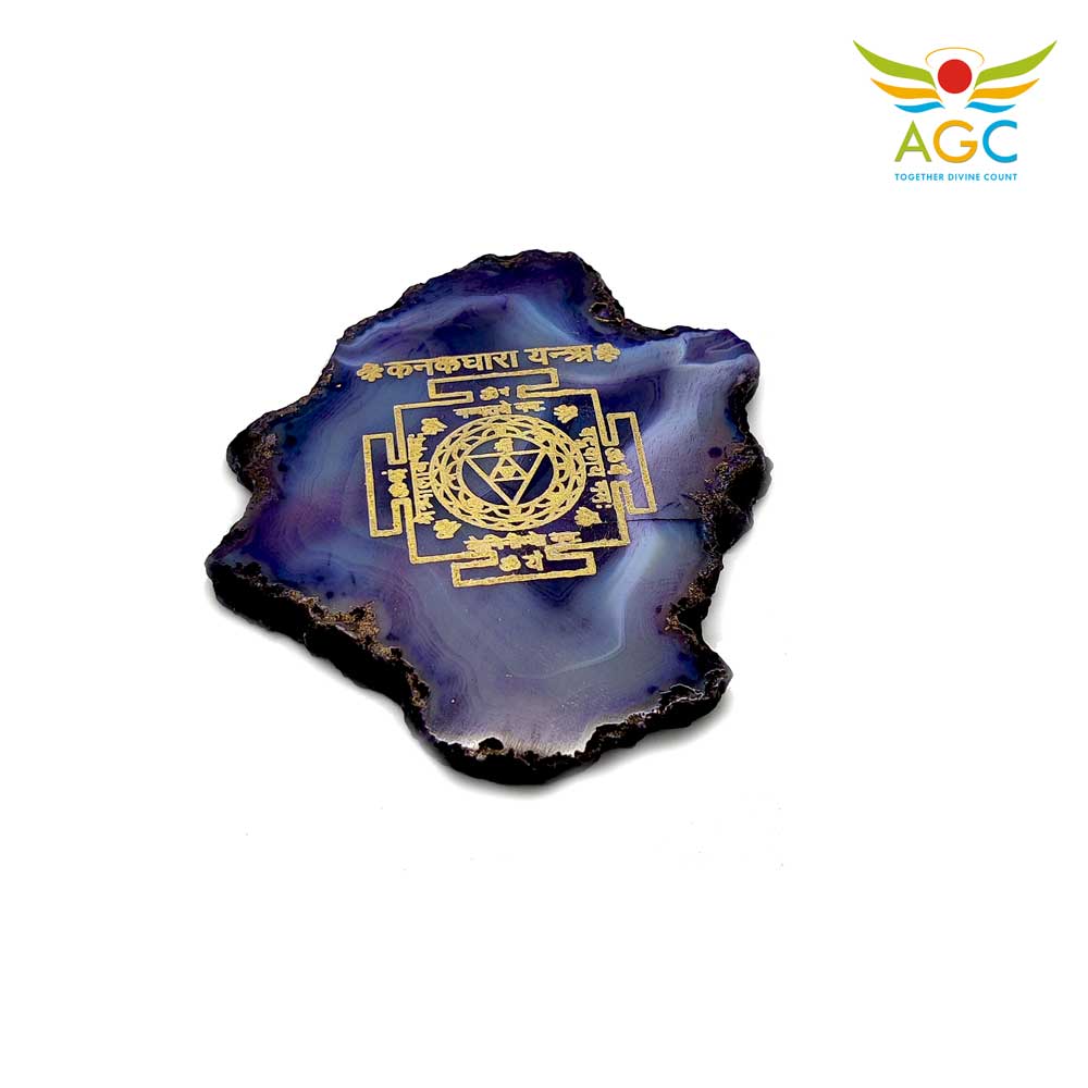 Agate Stone Blue with Kanakdhara mantra embossed in gold